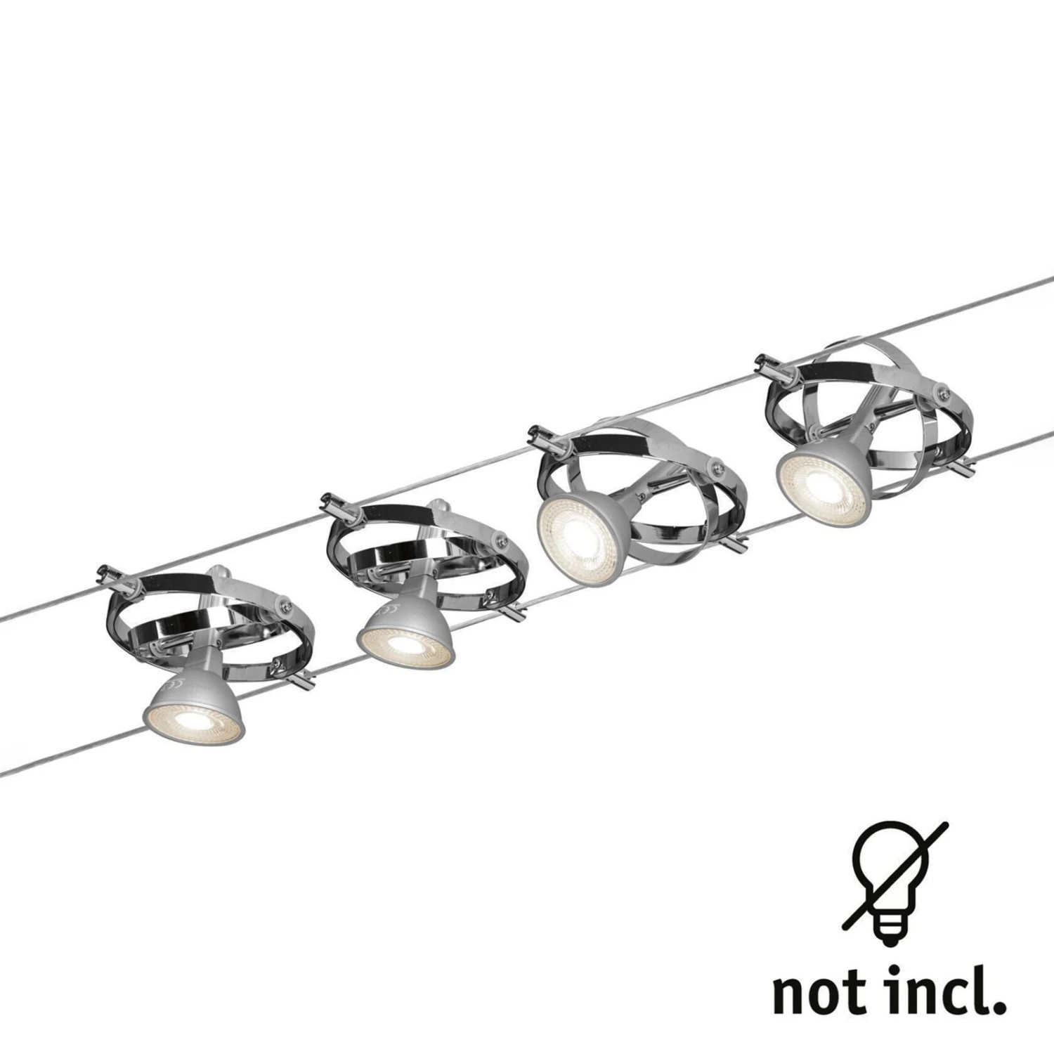 Seilsystem Cardan als Basisset mit vier Leuchten, Seil und Trafo
