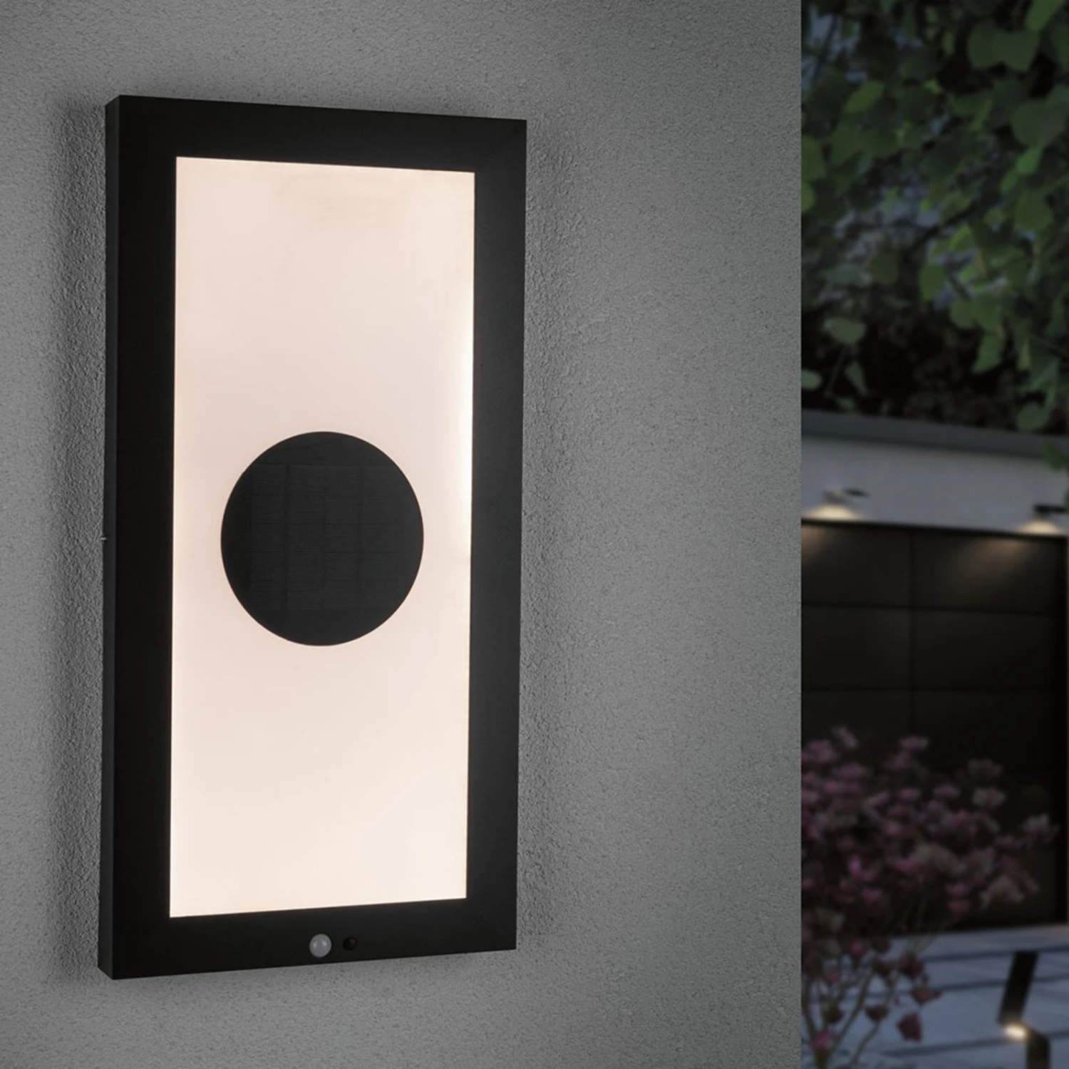 Nicht nur, dass die Wandleuchte ganz ohne Strom durch die Solartechnik funktionsfähig ist, sondern auch, dass sie sich nur dann einschaltet, wenn wirklich der Bedarf vorhanden ist, macht Taija so beliebt. Die vertikale Form der Leuchte eignet sich besonders für den Eingangsbereich, da sie einen weiten Bereich beleuchtet. Ihr Design ist modern und ansprechend durch die eckige Form und die Farbgebung in anthrazit und weiß. Das Solarpanel wurde unauffällig als schwarzer Kreis mittig in der Leuchte eingearbeitet