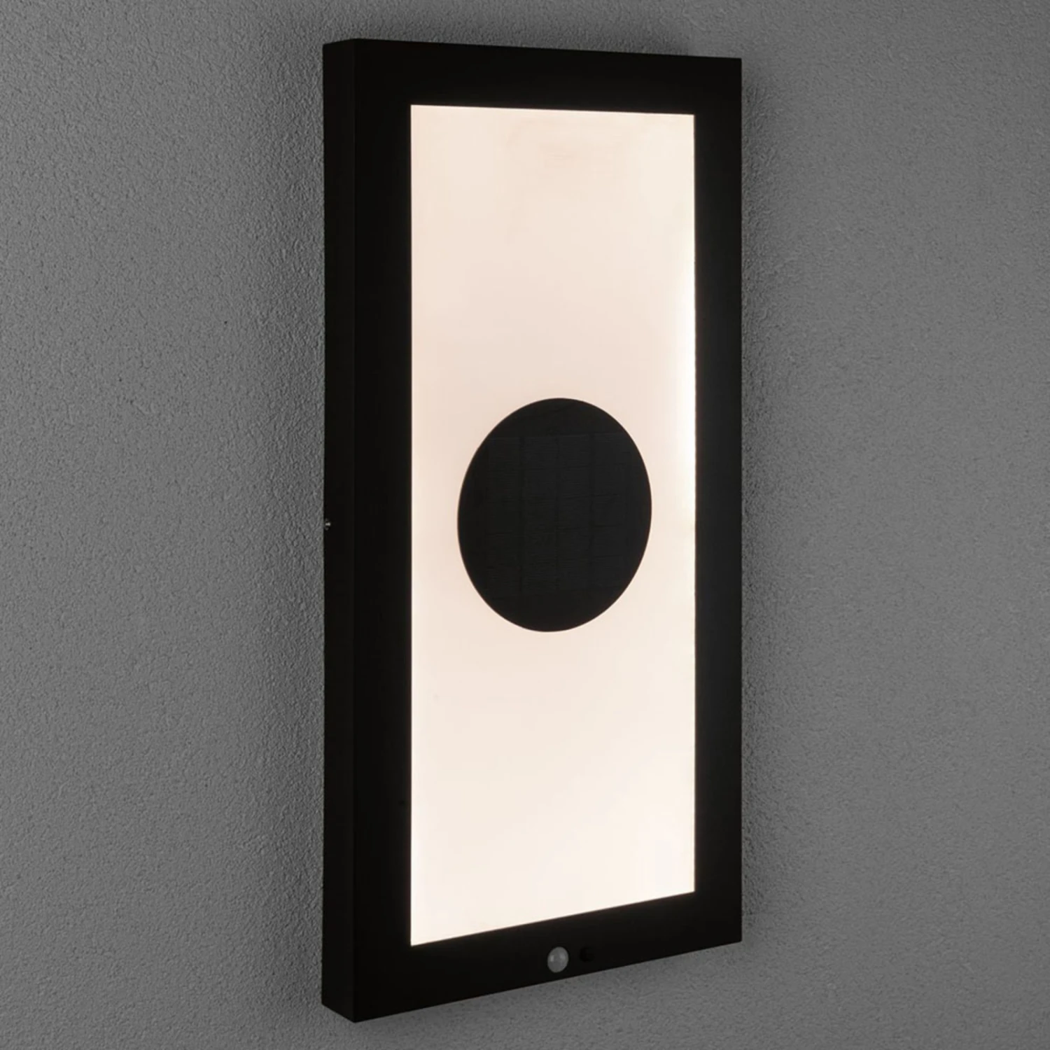 Längliche LED-Solar-Außenwandleuchte Taija mit integriertem Bewegungsmelder