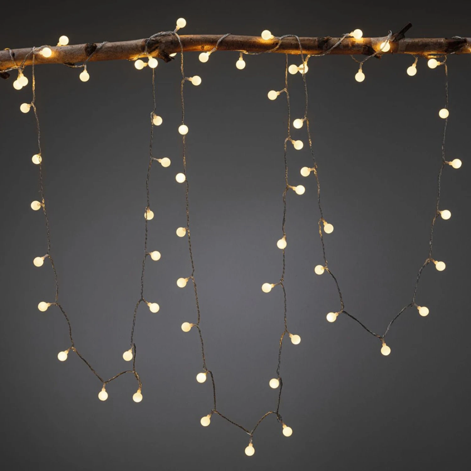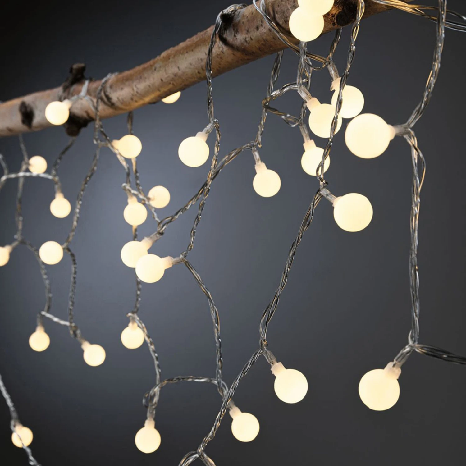 Mit dieser schönen LED-Lichterkette mit winzigen Kugeln, die von jeweils zwei LEDs in der Lichtfarbe Warmweiß beleuchtet werden, können Pflanzen und Sträucher im Garten sowie andere Elemente in der Dunkelheit effektvoll hervorgehoben werden. Es entsteht ein lichtvolles, behagliches Ambiente.