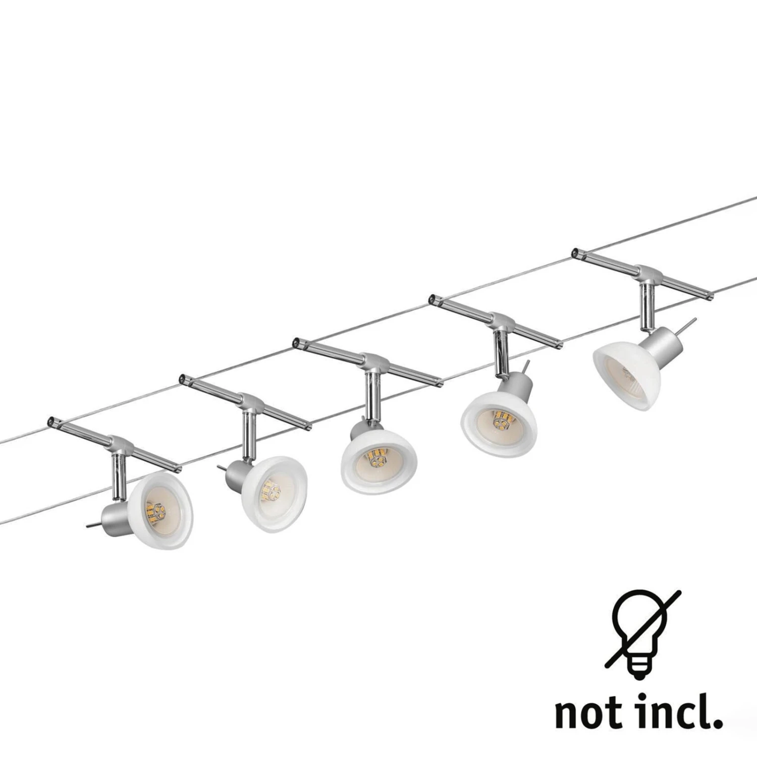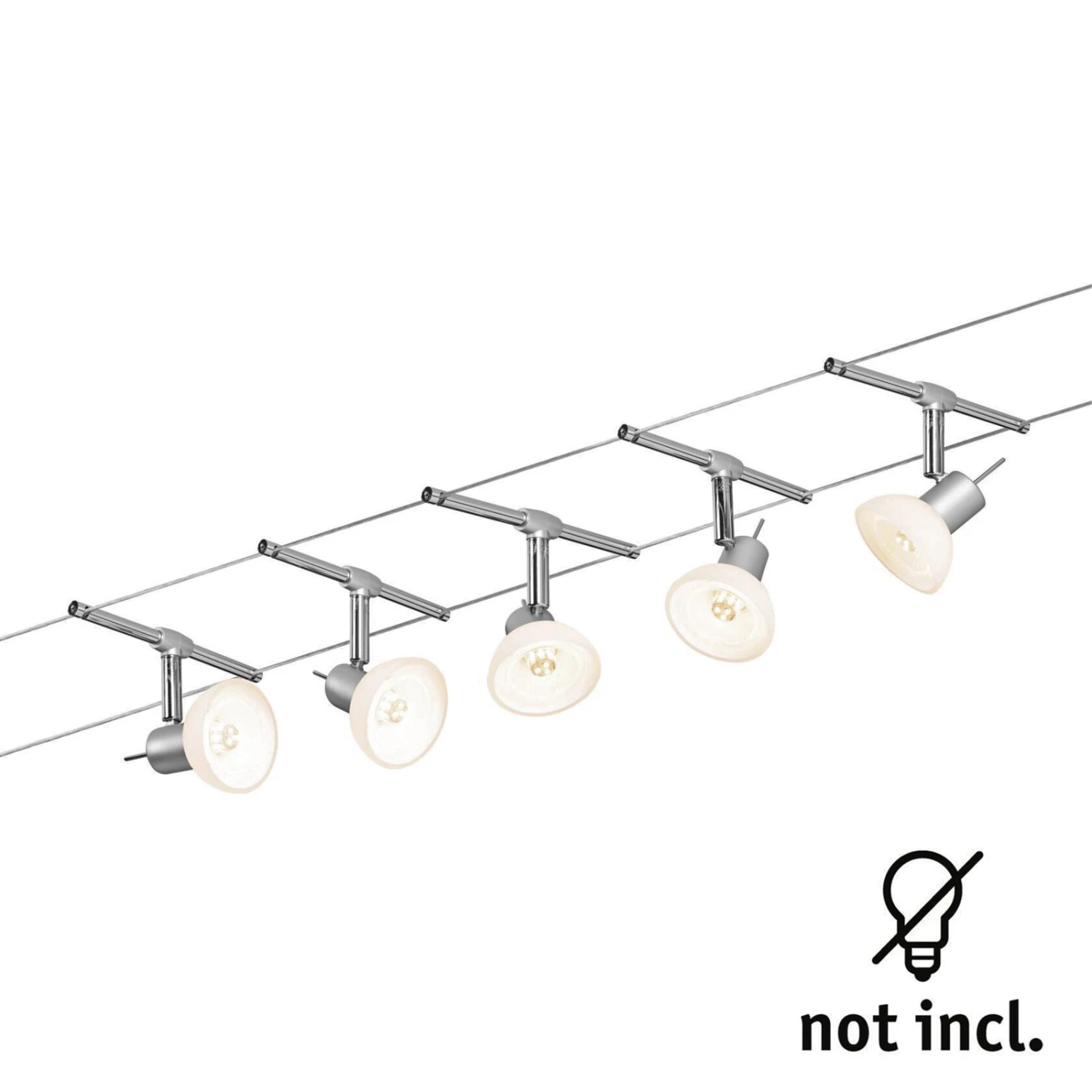 Seilsystem Sheela als fünfflammiges Basisset in Chrom matt mit Opalglas