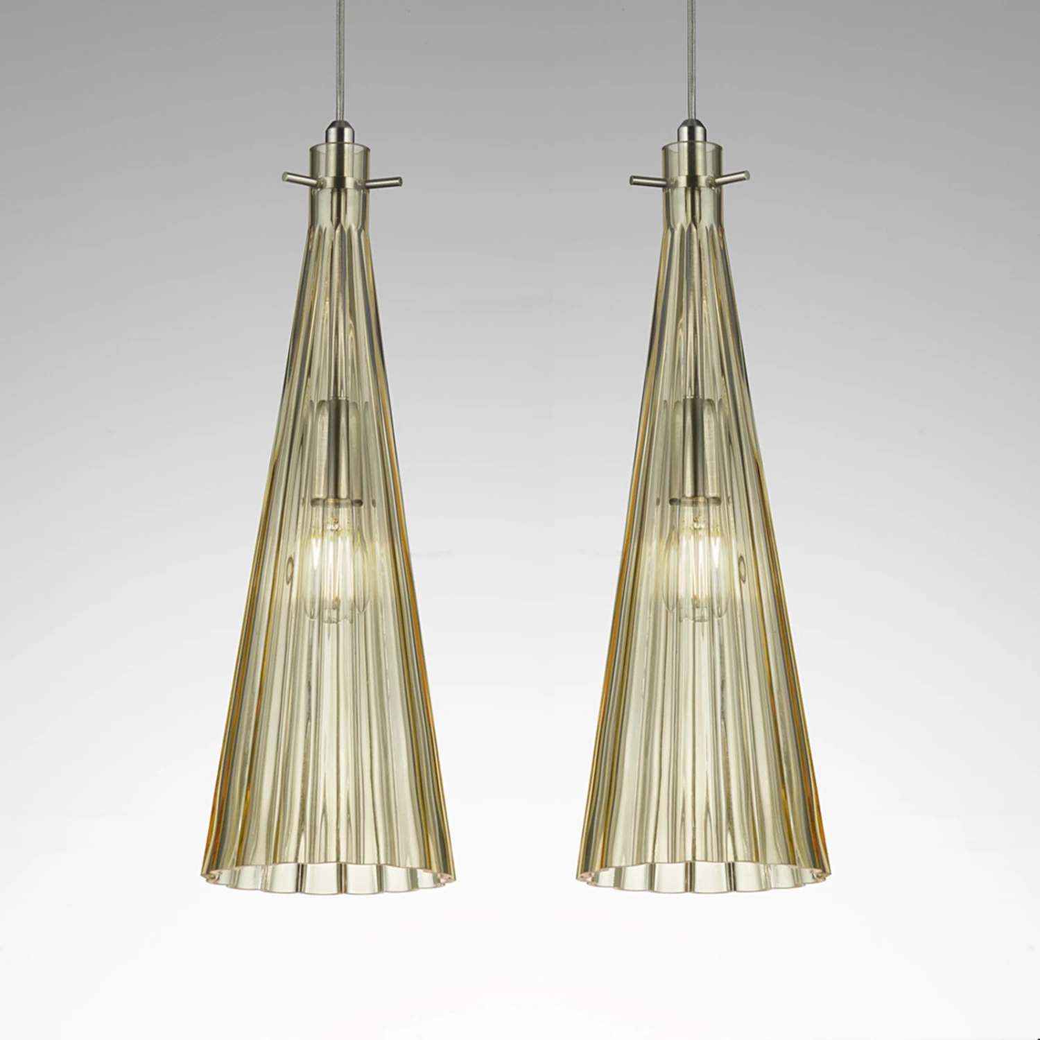 Mit ihrem eleganten und modernen Design stellt die Pendelleuchte Costa Rica einen echten Hingucker über einem Esstisch oder einem Tresen dar. Sie hat zwei schmale Schirme aus Glas, das geriffelt ist und wie ein Trichter nach unten hin breiter wird. Das Glas ist mundgeblasen und weist somit kaum merkbare Variationen auf, weshalb jeder Schirm ein Unikat ist. Aufgrund der Transparenz des Glasschirms ist das einzusetzende Leuchtmittel sichtbar, weshalb sich hier ein optisch ansprechendes Design empfiehlt.
