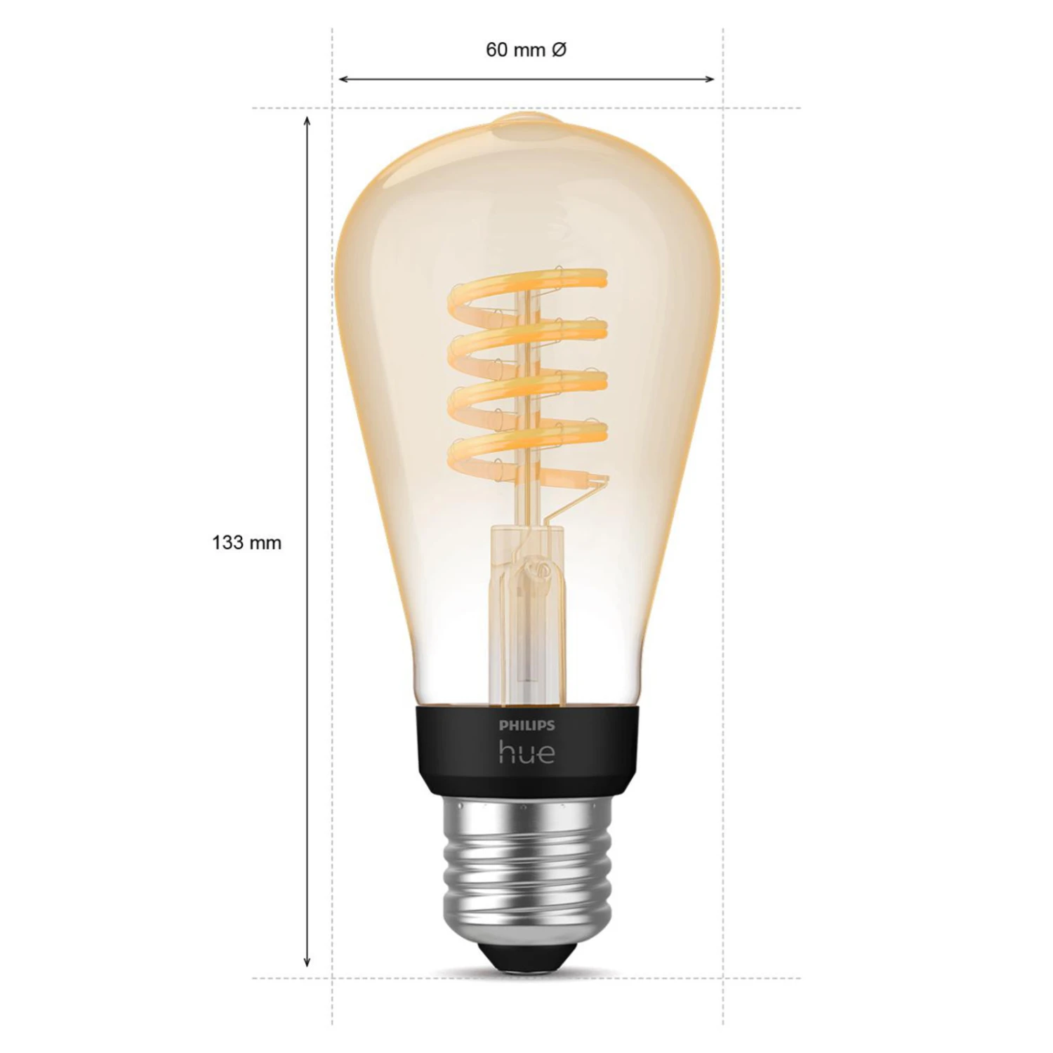 Per App oder Sprachassistent steuerbar – Philips Hue LED-Lampe E27 Filament in ST64 Rustikaform