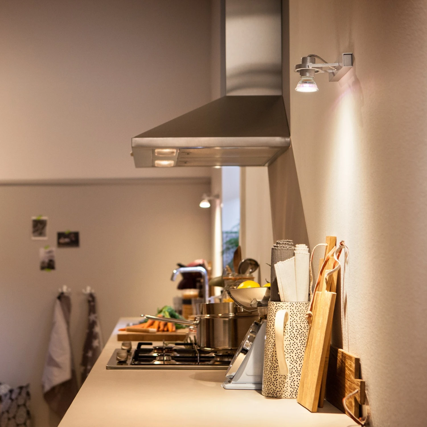 Dieses LED-Leuchtmittel PAR16 mit GU10-Sockel ersetzt herkömmliche Halogenlampen mit 50W. Der klare Glasreflektor strahlt das warmweiße Licht in einem Winkel von 36° aus.