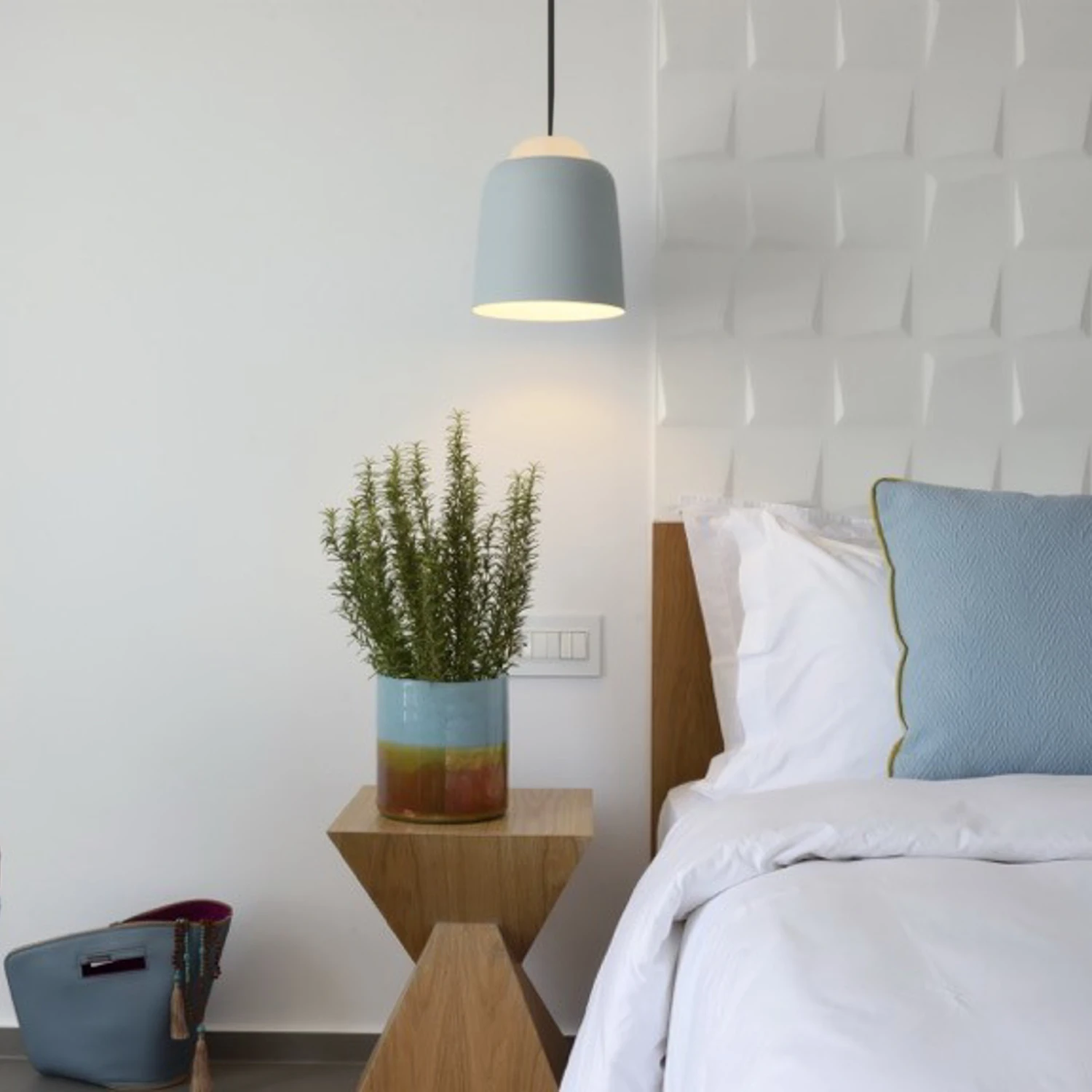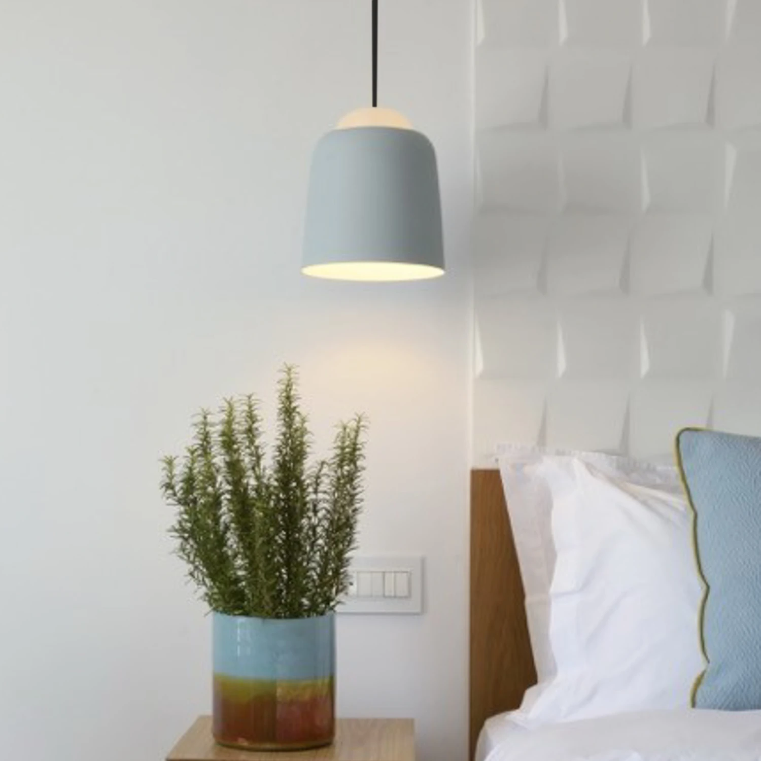 Das Design der Hängeleuchte Teodora von Prandina zeigt, wie leicht Licht es schafft, die Hauptrolle zu spielen. Der aus Metall bestehende Schirm der Leuchte wird im oberen Abschluss von einer Kuppel aus sandgestrahltem Glas ergänzt. Das Licht des eingesetzten Leuchtmittels entweicht so direkt durch die Schirmöffnung nach unten und zusätzlich durch die Glaskuppel auch sanft nach oben, so dass ein sehr schöner Lichteffekt und eine behagliche Indirekt-Beleuchtung entstehen.