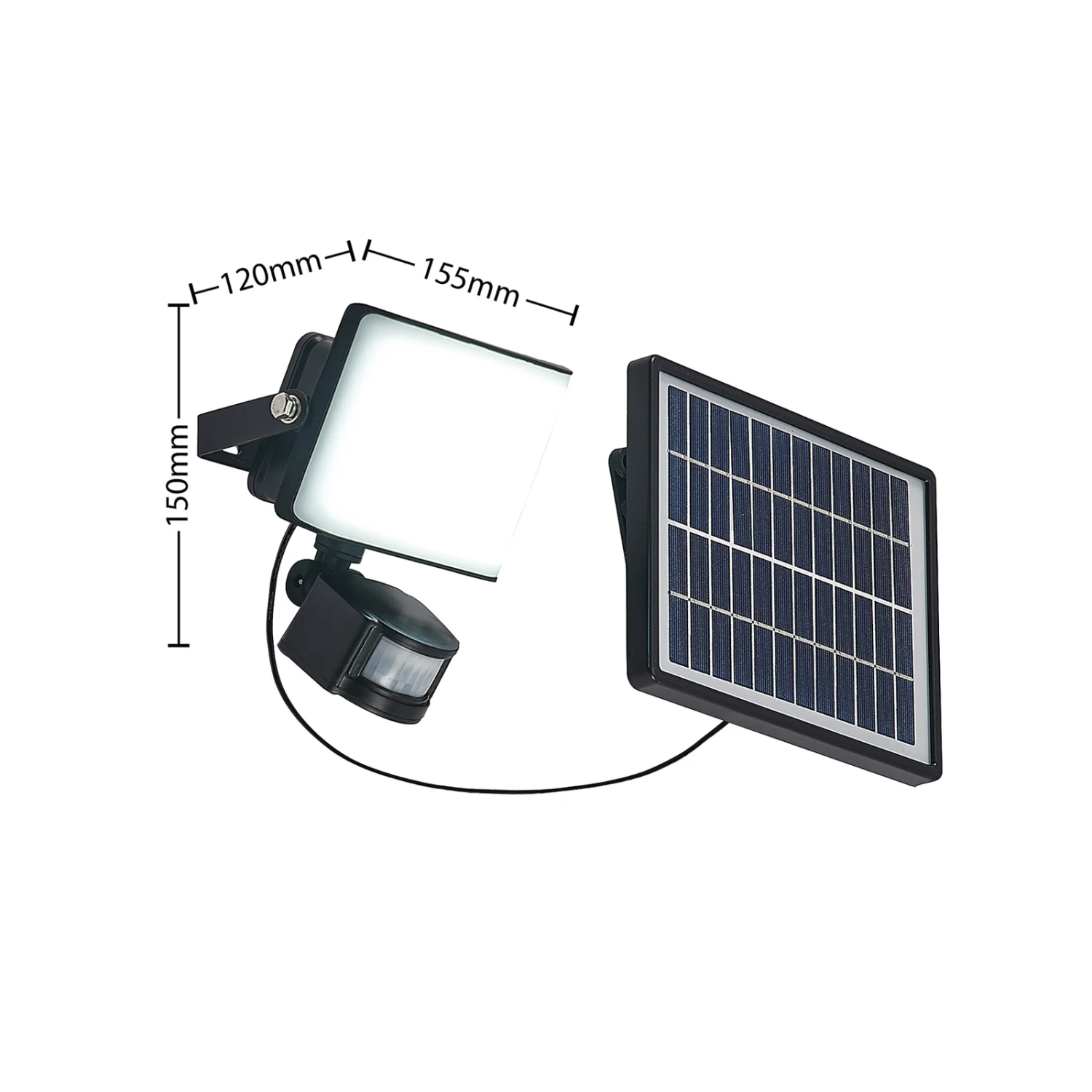 Der LED-Solar-Wandstrahler Darini punktet mit seinen fest verbauten LEDs, die durchaus leuchtstark sind und damit genügend Tageslicht in den Abendstunden bieten können. Außerdem kann er dank seiner Schutzart langfristig im Eingangs- oder Terrassenbereich dienen. Dieser Wandstrahler wird mithilfe eines Solarpanels betrieben und kann sich bereits nach 5 bis 6 Stunden an der Sonne komplett aufladen. Der integrierte Sensor reagiert auf Bewegungen in einem Winkel von 180° und in einer Entfernung von maximal 10 Metern. Dabei lässt sich die Leuchtdauer zwischen 5 Sekunden und 5 Minuten und die Lichtempfindlichkeit zwischen 20 und 20.000 Lux individuell einstellen.