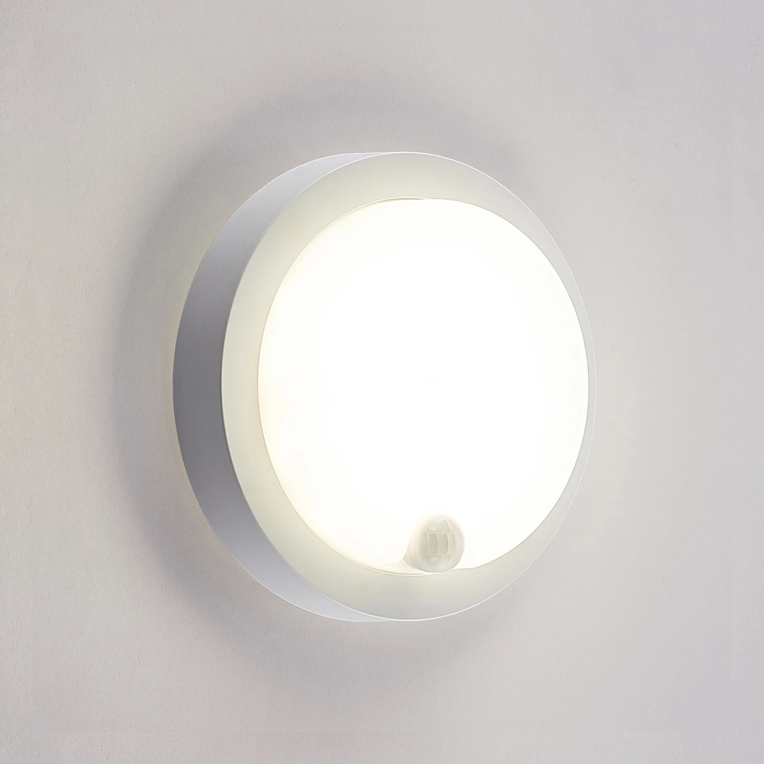 Weiße LED-Außenwandleuchte Lakin mit Bewegungsmelder