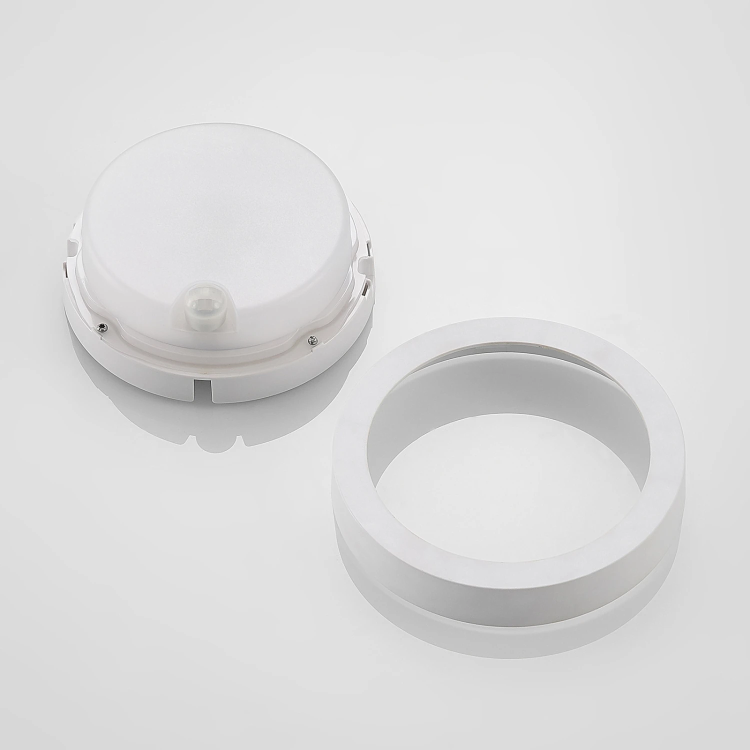 Die LED-Außenwandleuchte Lakin überzeugt mit ihrem schlichten Design und den technischen Features. Sie wurde aus langlebigem Kunststoff hergestellt und ganz in Weiß gestaltet. Ihre runde Bauform wirkt klassisch und lässt sich in vielerlei Umgebungen einfügen. Die Leuchte besitzt einen eingebauten Bewegungsmelder mit Reichweite von maximal 8 Metern und einem Erfassungswinkel von 100°.