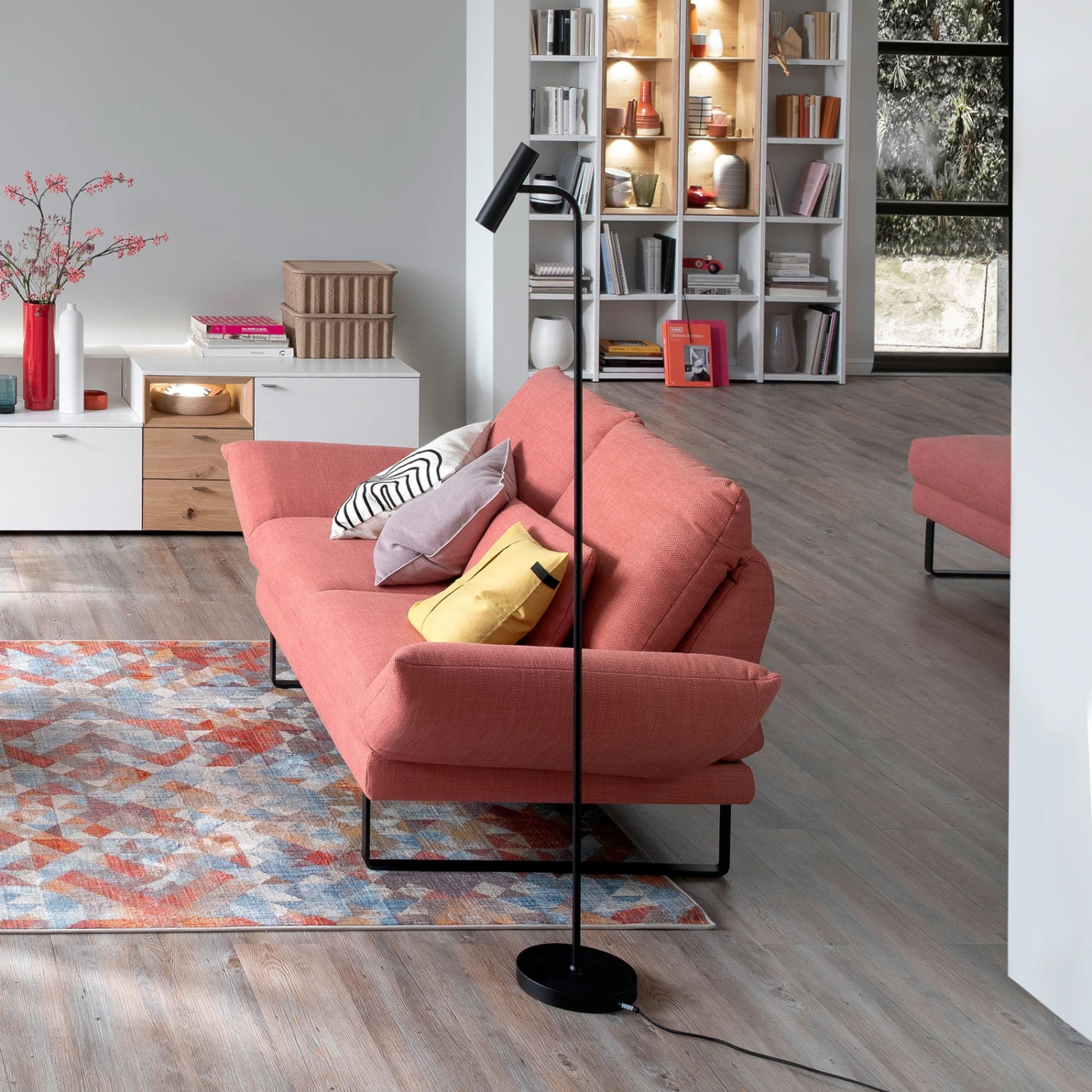 Die filigrane LED-Stehleuchte Stina passt ausgezeichnet zu fast jedem Einrichtungsstil, indem sie durch ihre matt-schwarze Farbe und ihre prägnante, stilsichere Form beeindruckt und wird daher gerne gewählt. Zusätzlich sorgt sie für zielgerichtete Beleuchtung unter anderem beim Lesen durch den dreh- und schwenkbaren Leuchtenkopf. Stina leistet hervorragende Dienste, egal ob im bequemen Sessel oder der komfortablen Couch. Durch ihren Fußschalter an der Zuleitung kann die Leuchte nicht nur bequem an Ort und Stelle ein- und ausgeschaltet, sondern auch in der Helligkeit geregelt werden.