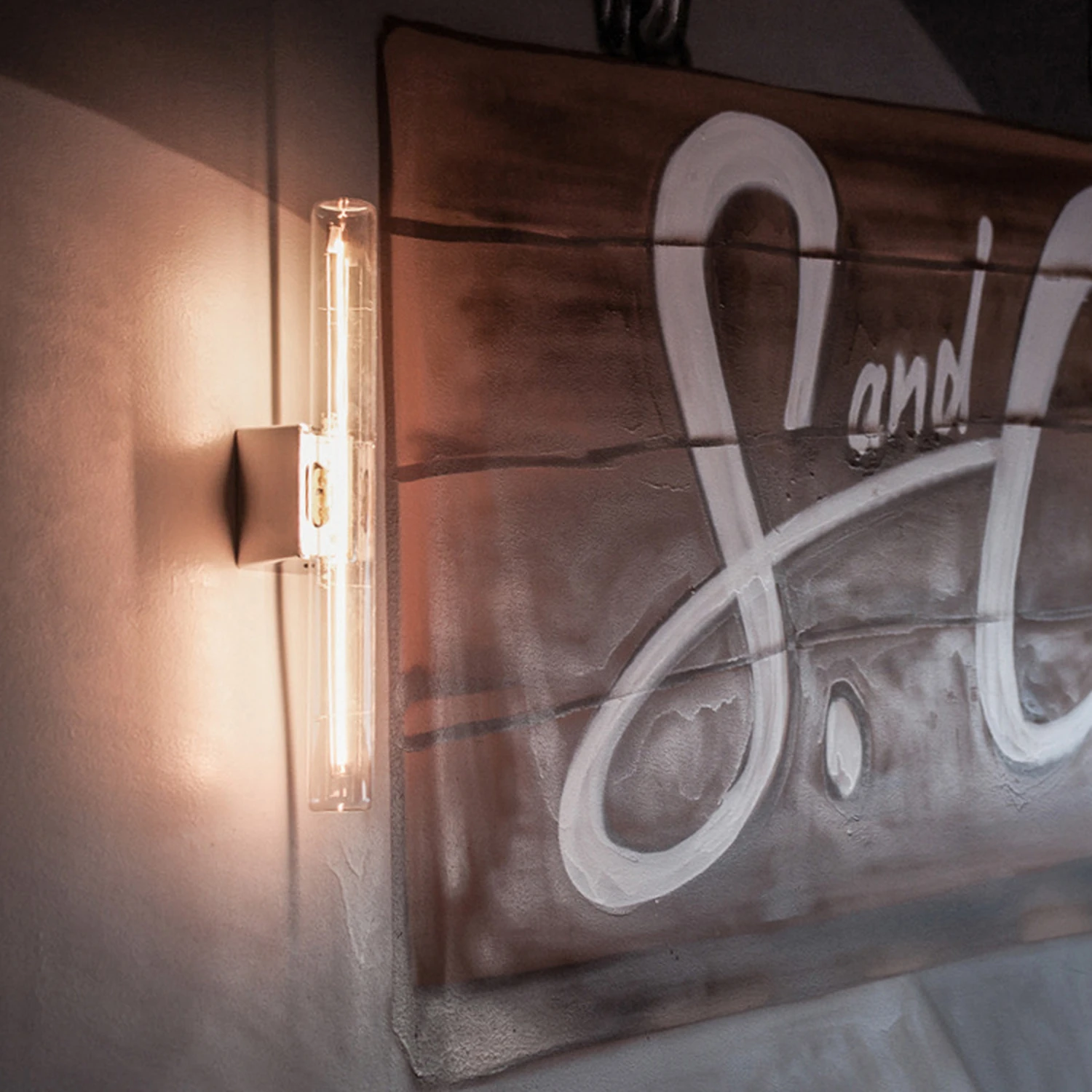 Minimalistisch und auf das Wichtigste reduziert präsentiert sich die aus Metall gefertigte, schwarze Wandhalterung. Sie ist rechteckig und wird einfach an der Wand angebracht. Der überwiegende Teil dieser Wandleuchte ist eine S14d-Fassung. Durch die schlichte Halterung kommt das eingesetzte Leuchtmittel hervorragend zur Geltung, weil nichts von der Lichtwirkung und der eleganten Linienlampe ablenken wird.