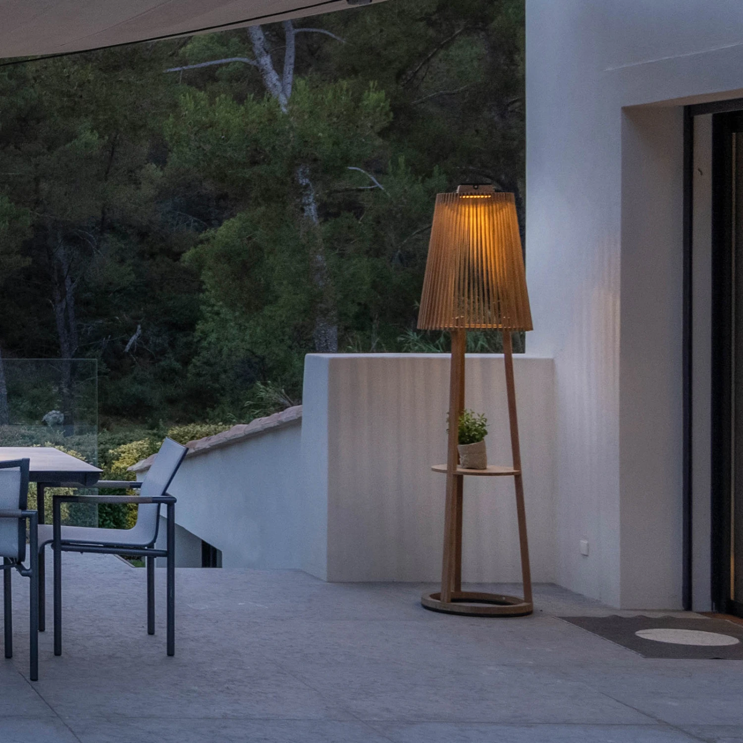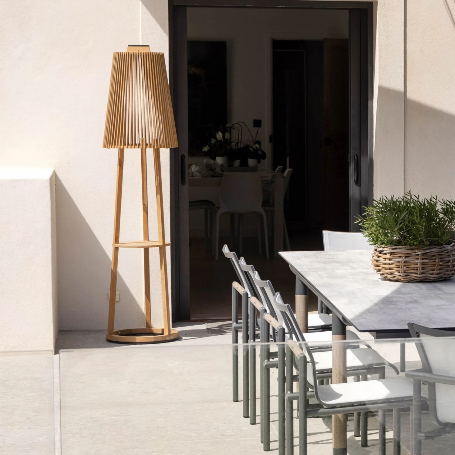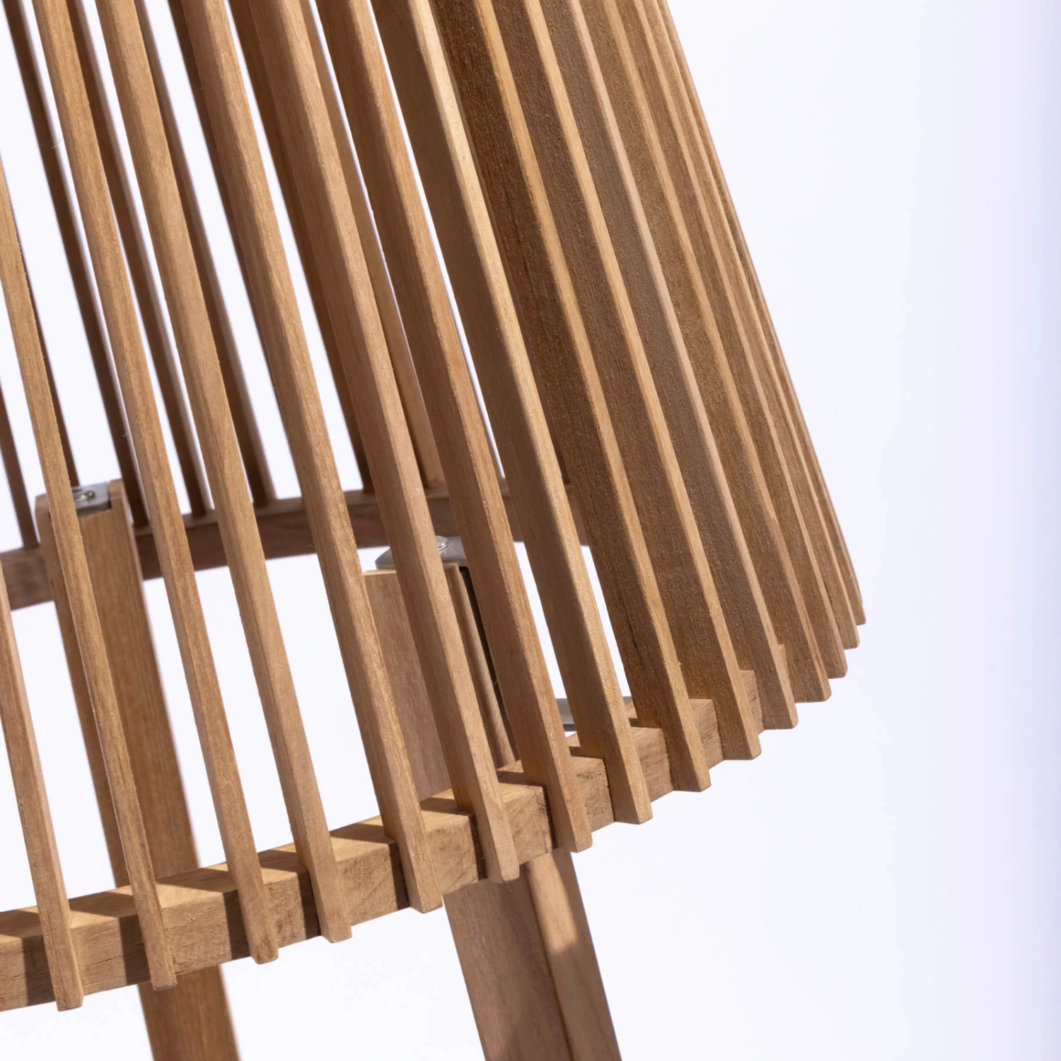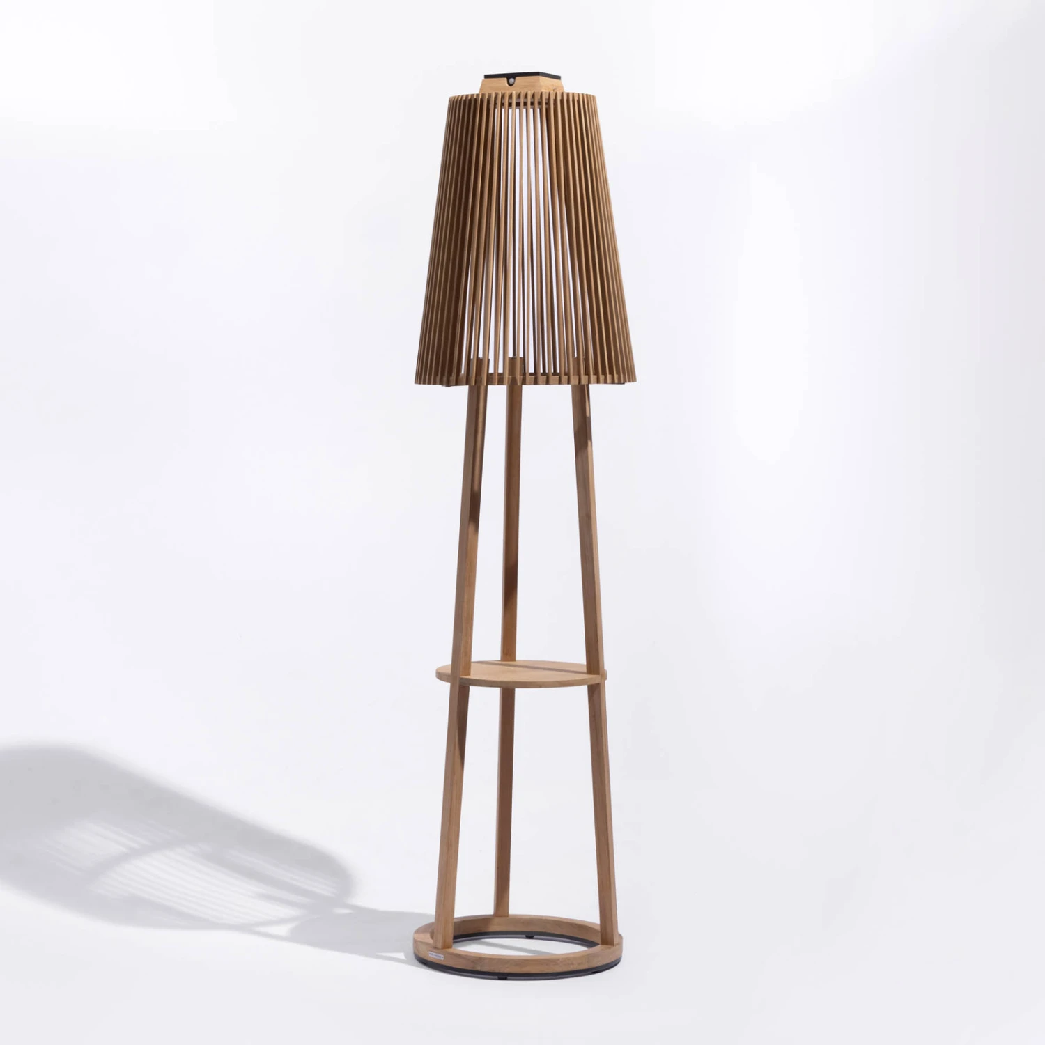 Holz-Stehleuchte Tecka mit solarbetriebener LED-Lichtquelle