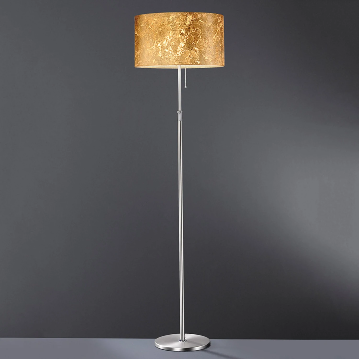 Herrliche Stehleuchte Alea Loop mit Blattgold-Leuchtenschirm – höhenverstellbar