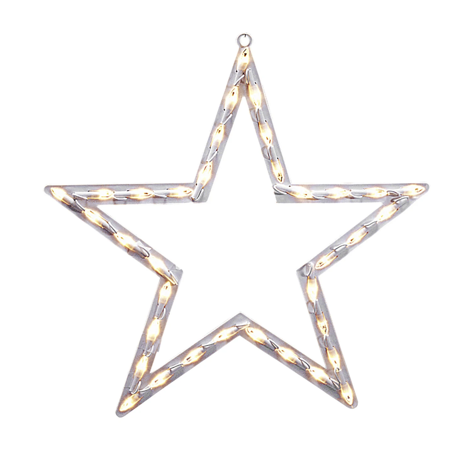 Die LED-Fenstersilhouette Stern wird von insgesamt 35 warmweiß leuchtenden Dioden lichttechnisch in Szene gesetzt und strahlt weit in die dunkle Nacht hinaus. Ein Innentrafo ist bereits in der Lieferung enthalten.