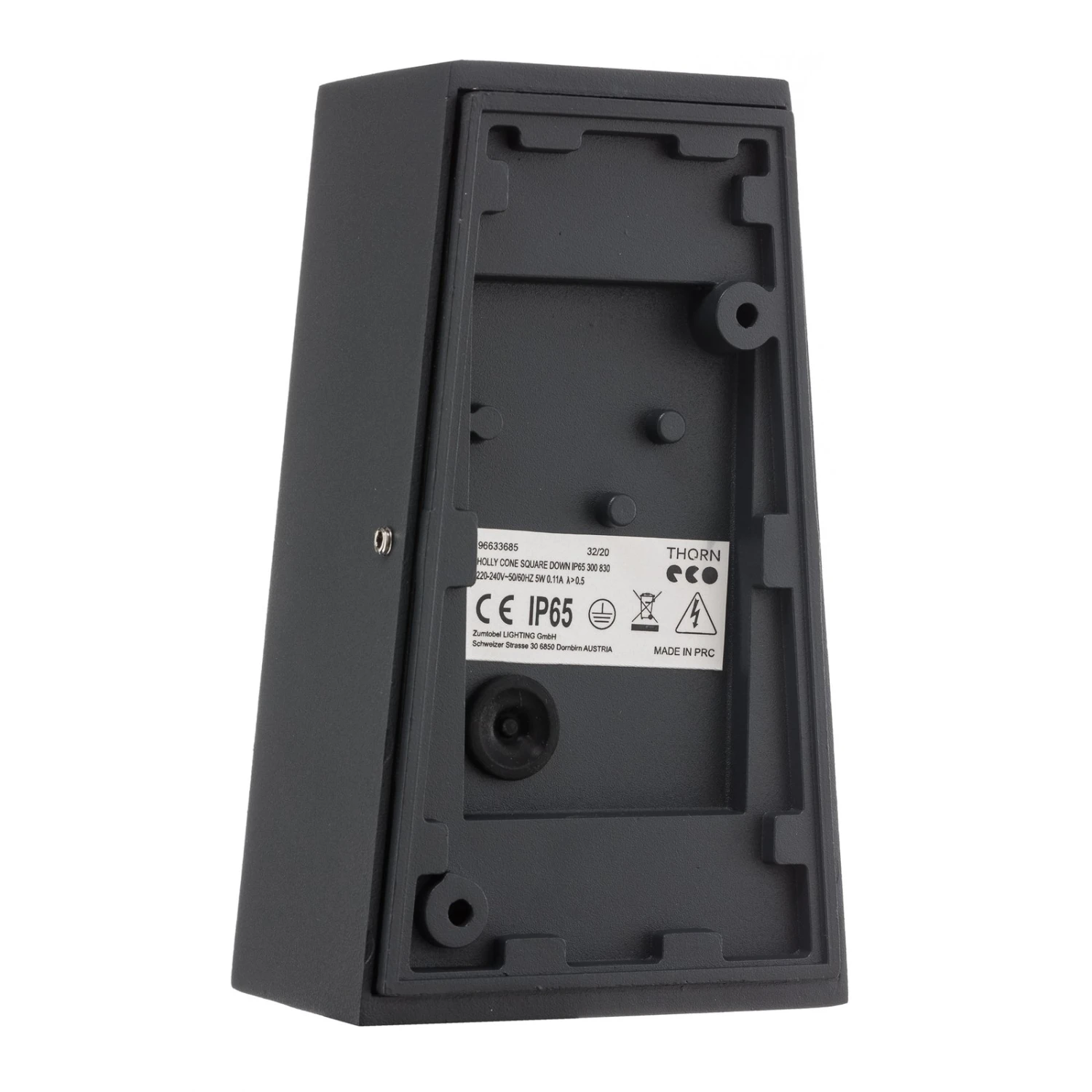 Das Gehäuse aus schwarzem Aluminiumdruckguss lässt die Leuchte sowohl schlicht als auch elegant wirken. Der Lichtaustritt erfolgt nach unten, wodurch Eingangsbereich und Hauswände geschickt in Szene gesetzt werden können. Das kantige Gehäuse ist kegelförmig. Die Leuchte eignet sich besonders für moderne Umgebungen.