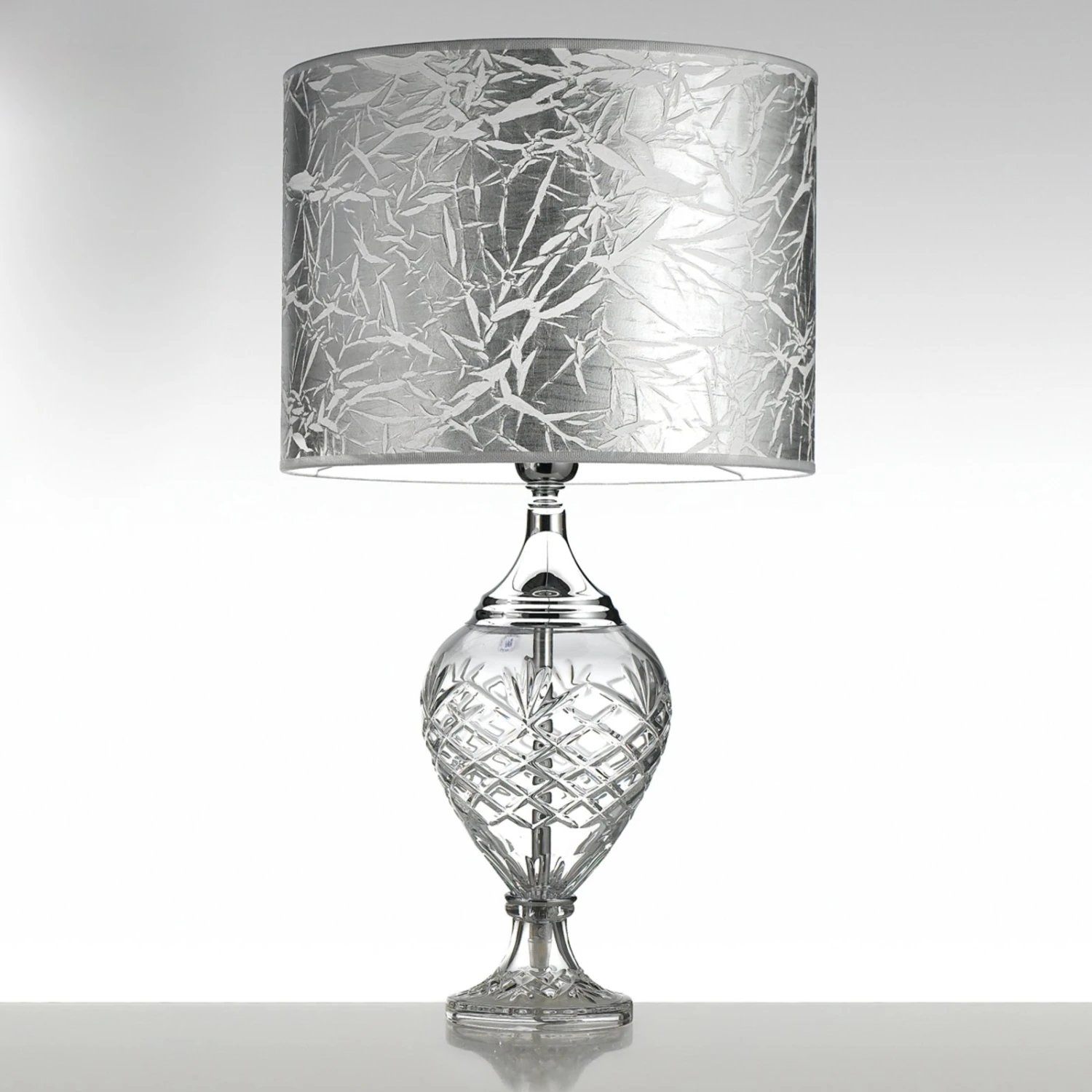 Sehr dekorativ wirkt die edel gestaltete Tischleuchte Belle Epoque, deren schöner Fuß aus klarem, geschliffenem Glas besteht. Den oberen Abschluss des Fußes bildet glänzend verchromtes Metall. Auch der Schirm der Tischleuchte Belle Epoque stellt eine Besonderheit dar, denn er wurde in schönem Dekor gestaltet. Ein- und ausgeschaltet wird die Tischleuchte Belle Epoque durch den in der Zuleitung integrierten Schalter. Made in Italy – die exquisite Tischleuchte Belle Epoque ist ein Qualitätsprodukt eines namhaften italienischen Leuchtenherstellers. Sie wurde in Handarbeit aus hochwertigen Materialien in Italien gefertigt.