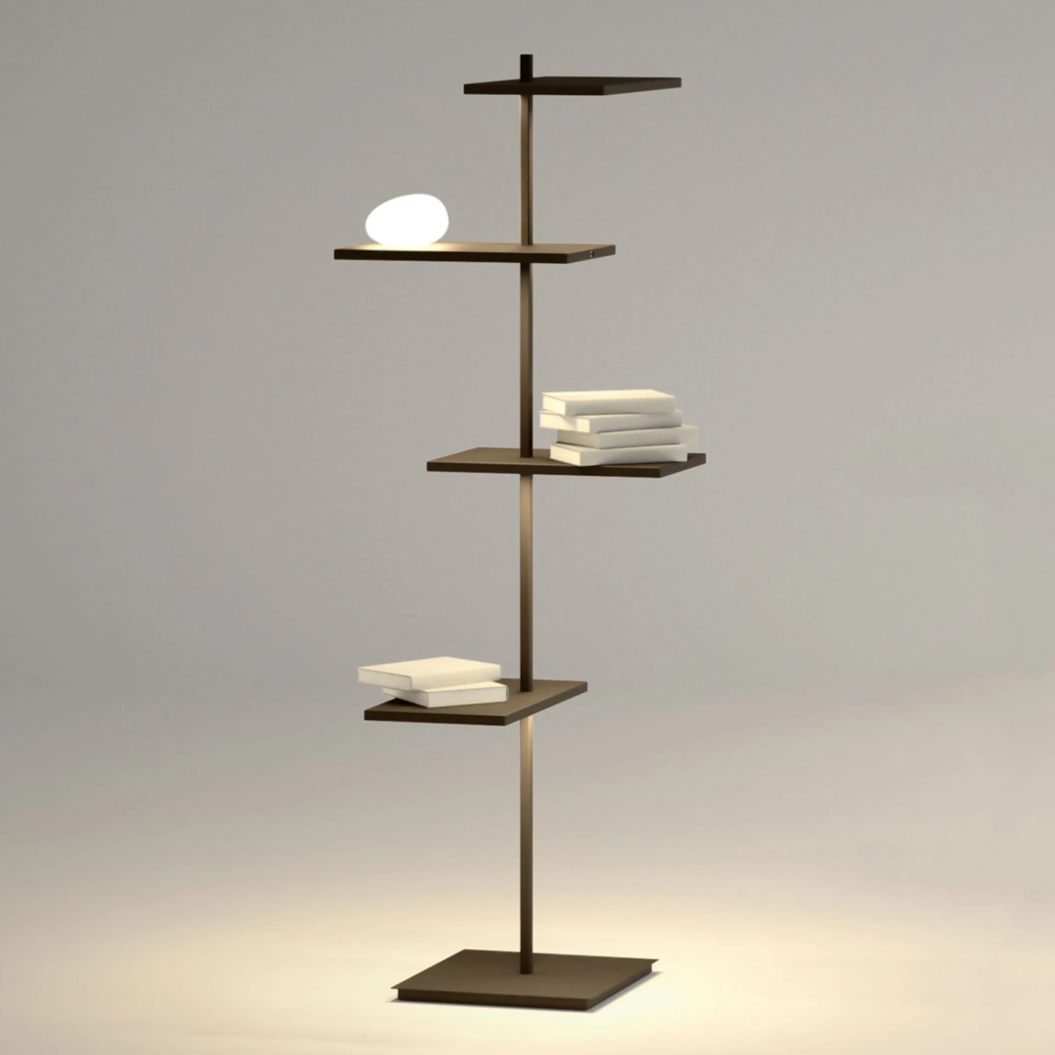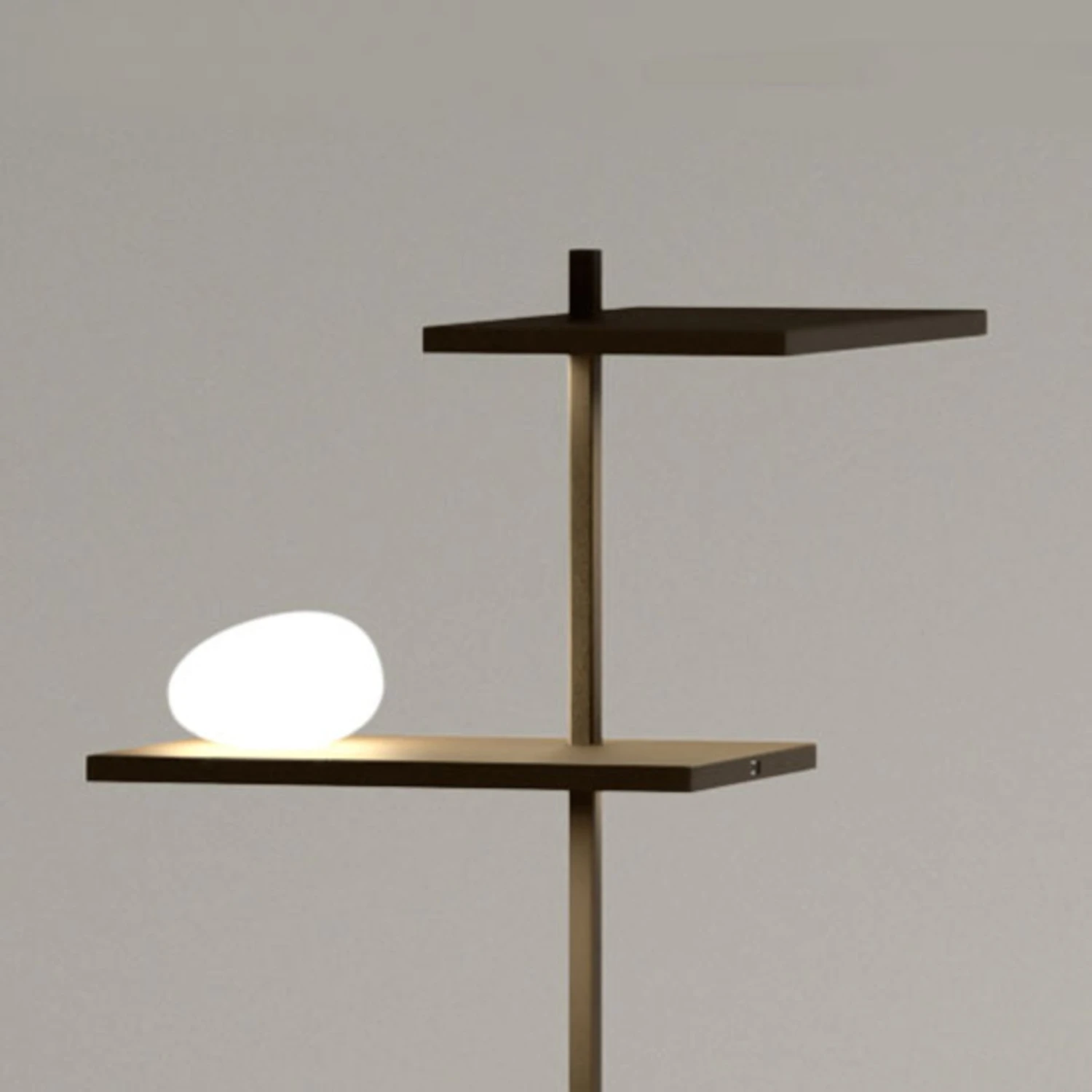 Auf den ersten Blick erkennt man nicht, ob es sich bei der LED-Stehleuchte der Serie Suite um einen Beistelltisch oder eine Leuchte handelt. Tatsächlich vereint sie beides in sich, denn vier unterschiedlich angeordnete Ebenen bieten praktische Ablageflächen für zahlreiche Alltagsgegenstände. Erst im eingeschalteten Zustand kommen die LED-Strips zum Vorschein, die sich unterhalb der Ebenen verbergen und ein weiches, indirektes Licht spenden. Ein besonderes Highlight ist das wie ein leuchtender Stein aussehende dimmbare LED-Lichtelement, das wie zufällig auf einer der Ebenen abgelegt worden zu sein scheint und auch als Lesebeleuchtung dienen kann. Im wohligen Licht der Stehleuchte sind entspannte und gemütliche Momente garantiert.