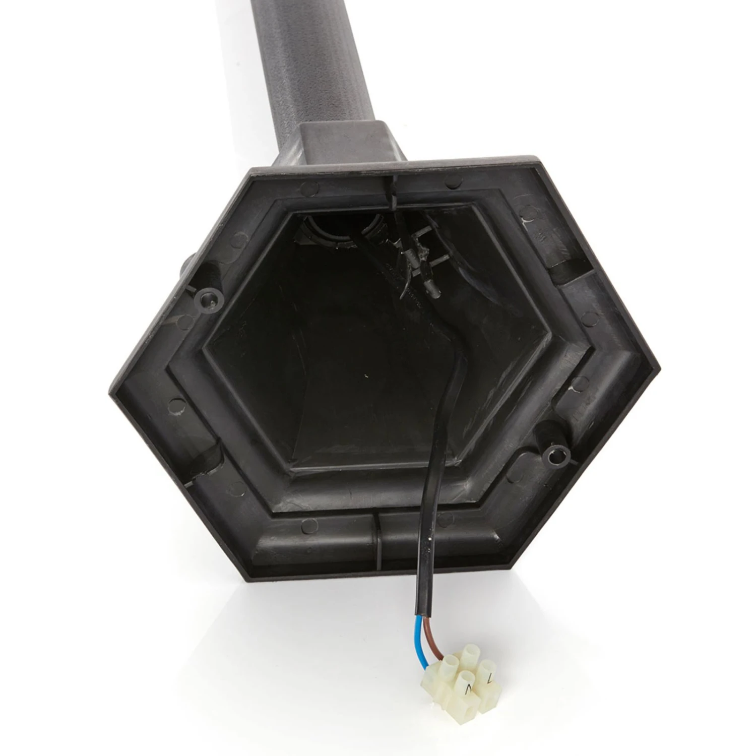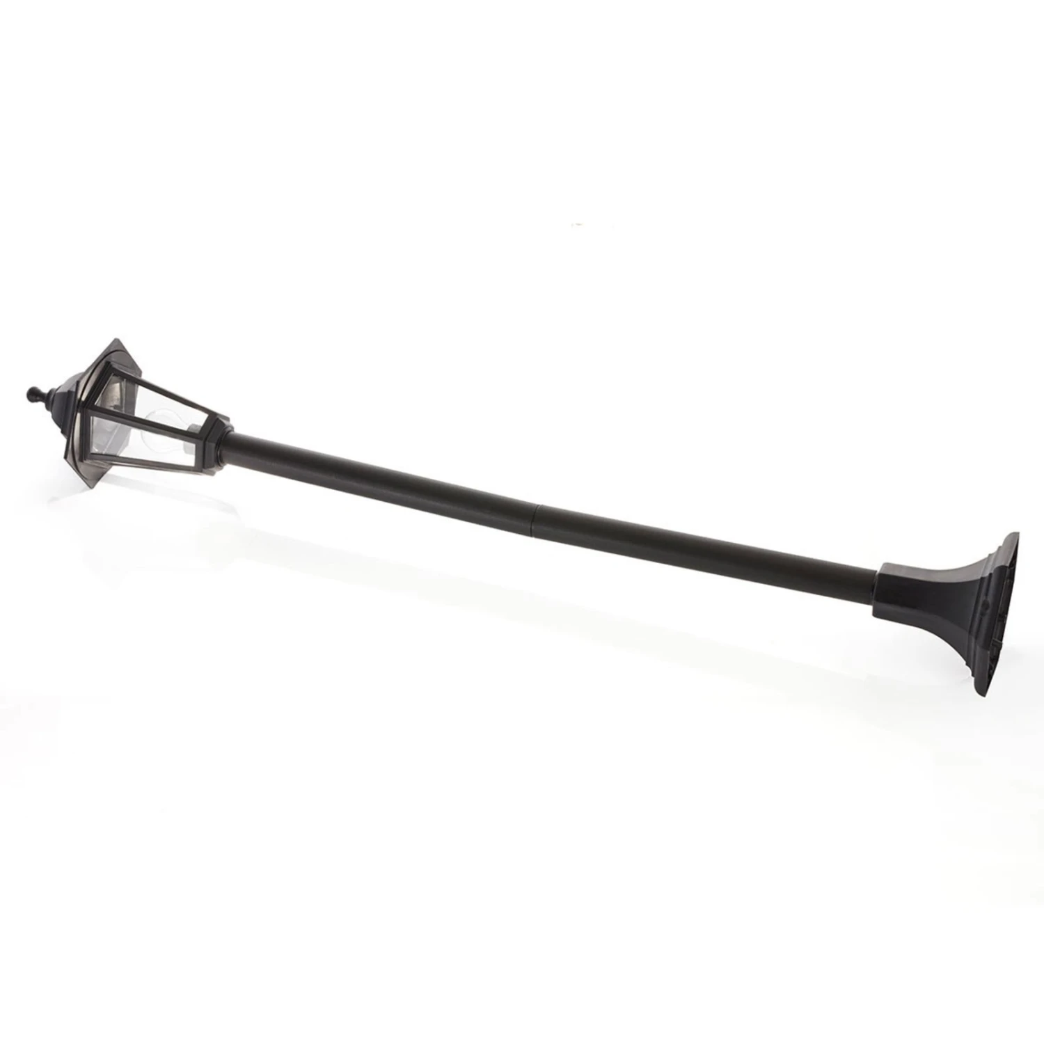 Nane passt gut zu einem historischen Ambiente, denn die Wegelampe ist im Stil einer klassischen Laterne gehalten. Oben auf der Leuchte sitzt eine Art Dach und seitlich wird der Leuchtkopf von klaren Glaseinsätzen geziert. So kann man das Leuchtmittel gut sehen und sollte es deshalb mit Bedacht wählen. Besonders empfehlenswert sind daher Lampen mit Filament-Technik, die so stilvoll aussehen wie Glühbirnen. Die Oberfläche des robusten Kunststoffgestells ist in vielseitig verwendbarem Schwarz gehalten und seewasserfest, so dass man Nane auch dort montieren kann, wo das Meer nicht weit ist und Salz in der Luft liegt.