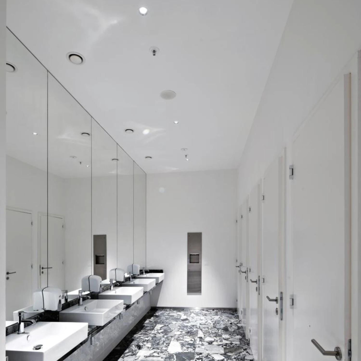 Der Hersteller Zumtobel hat die LED-Deckeneinbauleuchte Diamo als topmoderne Lichtquelle für öffentliche Innenbereiche konzipiert. Unterschiedliche Farbtemperaturen von warmweißem bis tageslichtweißem und dabei dimmbarem Licht machen Diamo zu einem vielseitig einsetzbaren Downlight – von Verkaufsflächen über Korridore bis hin zum Duschbereich (Spritzwasserschutz notwendig – siehe Zubehör).